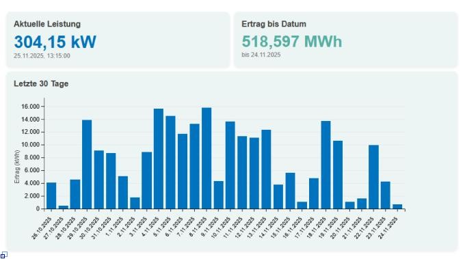 Den aktuellen Ertrag des Solarparks können Sie durch einen Klick auf das Bild einsehen.