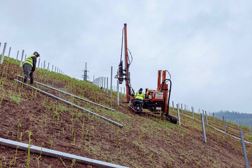 Die Hanglage erwies sich als anspruchsvoll, doch kreative Lösungen machten das Projekt möglich. Bauleiter Marc Schipper von Dr. Metje Green Energy Projects berichtet: „Für 19 Fundamente mussten wir aufgrund der örtlichen Begebenheiten und der Wetterverhältnisse die Löcher mit der Hand graben.“ Bagger förderten auf dem Hang bis zu 2 Tonnen schwere Steine aus der Erde. nutzte Forstmaschinen und innovative Techniken, um die schweren Solarmodule zu montieren. „Wir Norddeutsche können auch Berge“, resümierte er stolz.